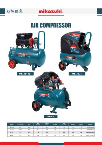 MODEL POWER (KW) RPM (KG/CM ) 2 MODEL M /MIN CAPACITY N.W/KGS G.W/KGS BOX SIZE