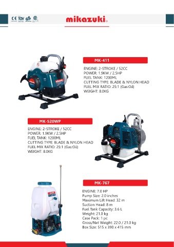 FUEL TANK: 1200ML Maximum Lift Head: 32 m